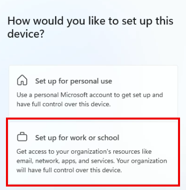 Device Setup Type: Set up for work or school.